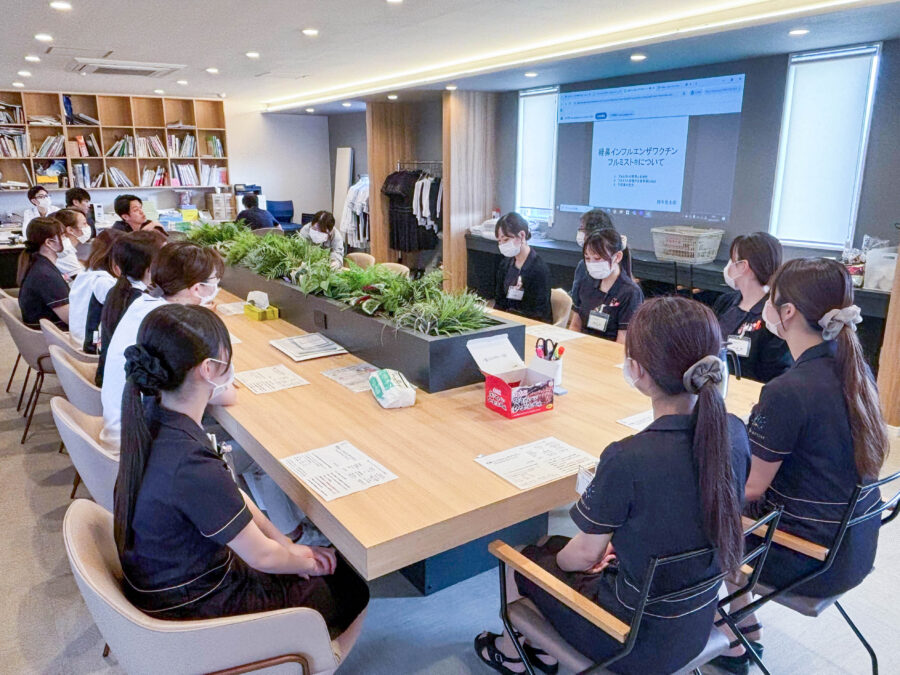 勉強会「経鼻インフルエンザワクチン フルミスト®について」 2025年10月15日 本日の勉強会は、小児科の鈴木医師より経鼻インフルエンザワクチン(フルミスト®)に関する説明がありました。 対象年齢や接種回数、投与方法、費用など従来の注射ワクチンとの違いや、接種ができない方や注意が必要な方を確認したほか、予診票チェックの注意点を改めて共有し、安全かつ適切な接種に向けた知識を深めました。 経鼻インフルエンザワクチンの詳細については、こちらからご確認ください。 LINE facebook instagram X « 勉強会「インフルエンザワクチンのご案内について」