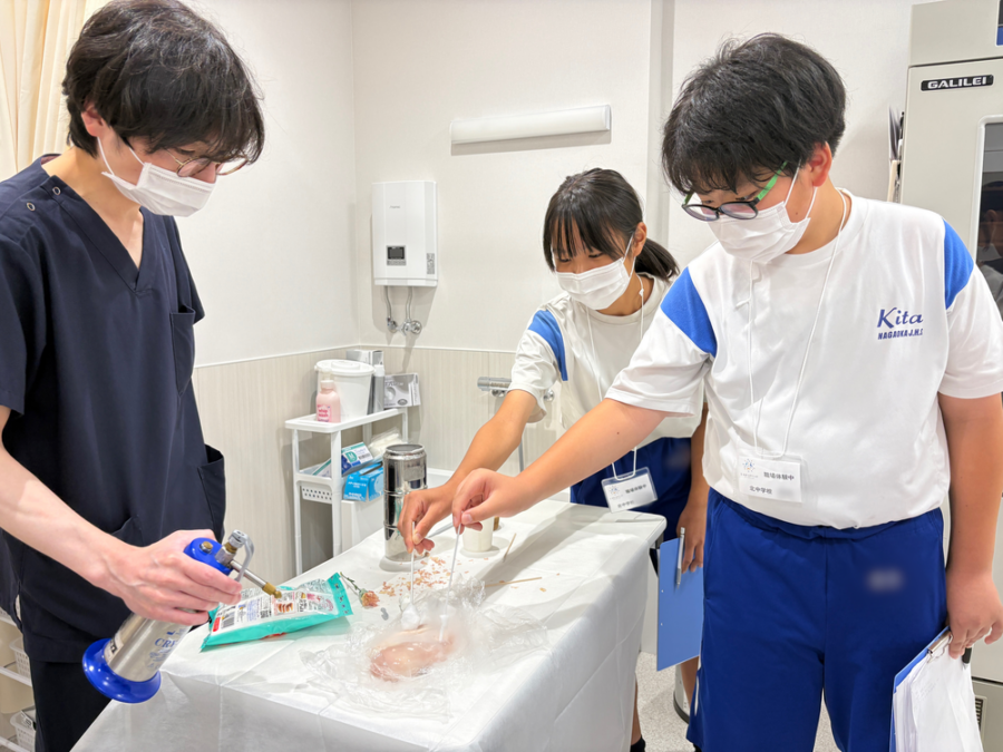 生徒さんたちは、診察室や受付の見学、エコー体験、看護師からの仕事説明などどの体験にも一生懸命にメモを取りながら取り組み、積極的な質問を投げかけてくれました。